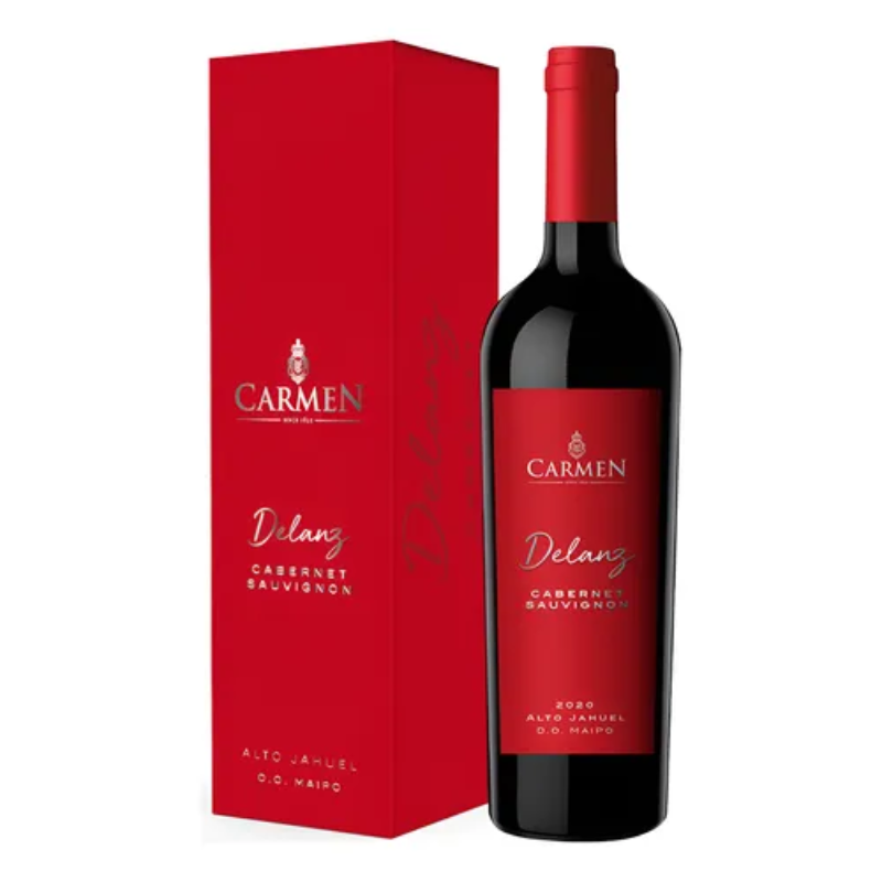Vino Carmen Delanz Cabernet Sauvignon 750 cc es un vino tinto elegante y expresivo, elaborado con uvas cuidadosamente seleccionadas que reflejan el carácter clásico del Cabernet Sauvignon. Presenta un color rojo rubí profundo y brillante.